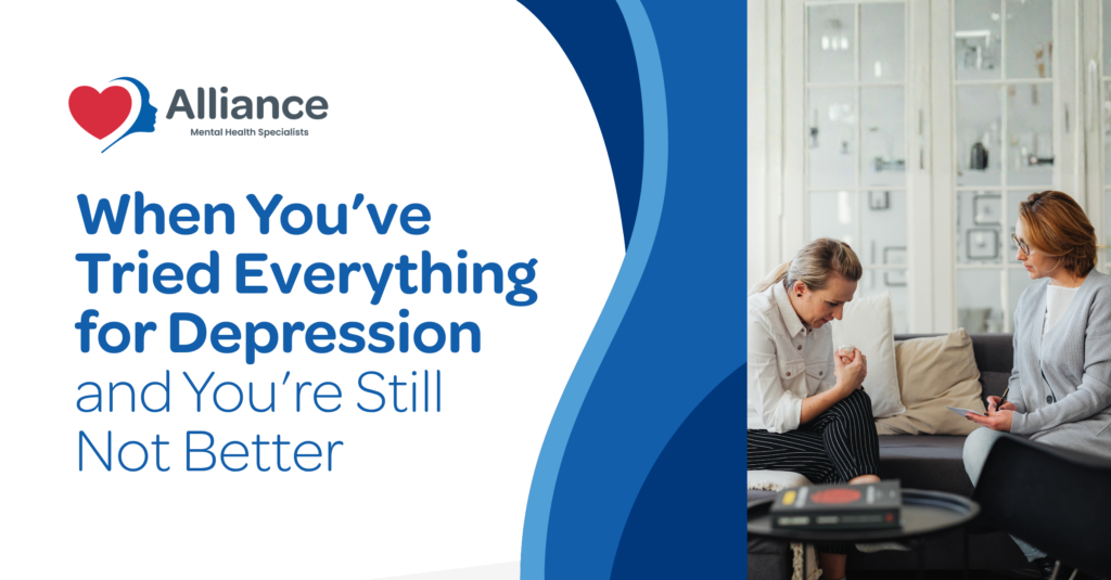 Alliance Mental Health evaluates individuals who remain depressed despite multiple medication trials, therapy, lifestyle changes, and sustained effort. Many arrive convinced that nothing works. That conclusion usually reflects repetition of similar strategies rather than exhaustion of available treatment mechanisms. Persistent depression after several adequate trials signals the need for structured reassessment and escalation.